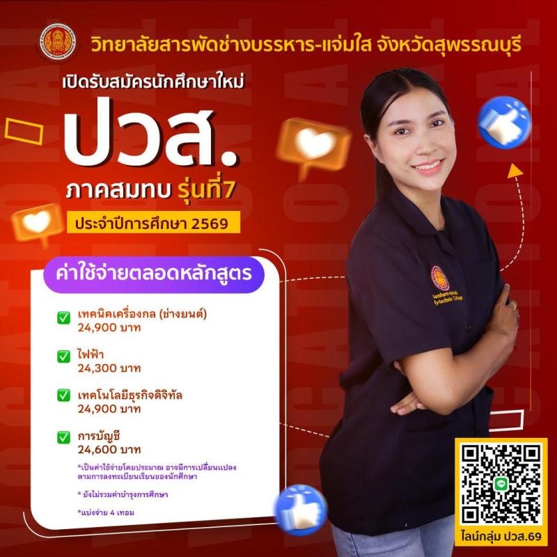 ประกาศรับสมัครนักศึกษาใหม่ หลักสูตร ปวส.ภาคสมทบ ประจำปีการศึกษา 2569