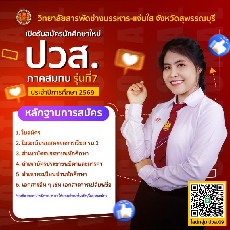 ประกาศรับสมัครนักศึกษาใหม่ หลักสูตร ปวส.ภาคสมทบ ประจำปีการศึกษา 2569